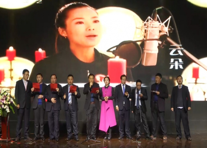 中層管理干部為大家演唱《讓世界充滿愛》